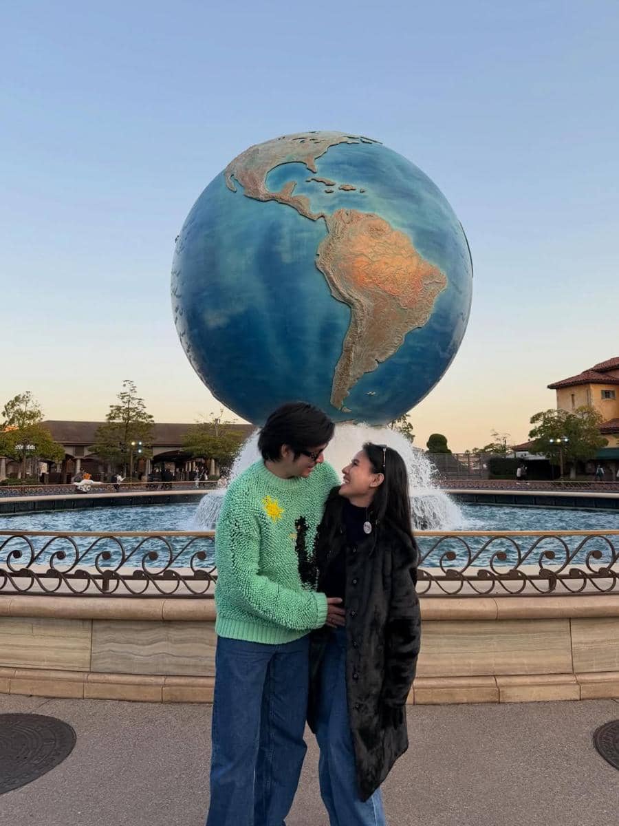 Ia justru terlihat semakin menikmati setiap saat yang terjadi. Beberapa kali Shenina dan Angga tampak berfoto di area tersebut.iconic khas Disney.